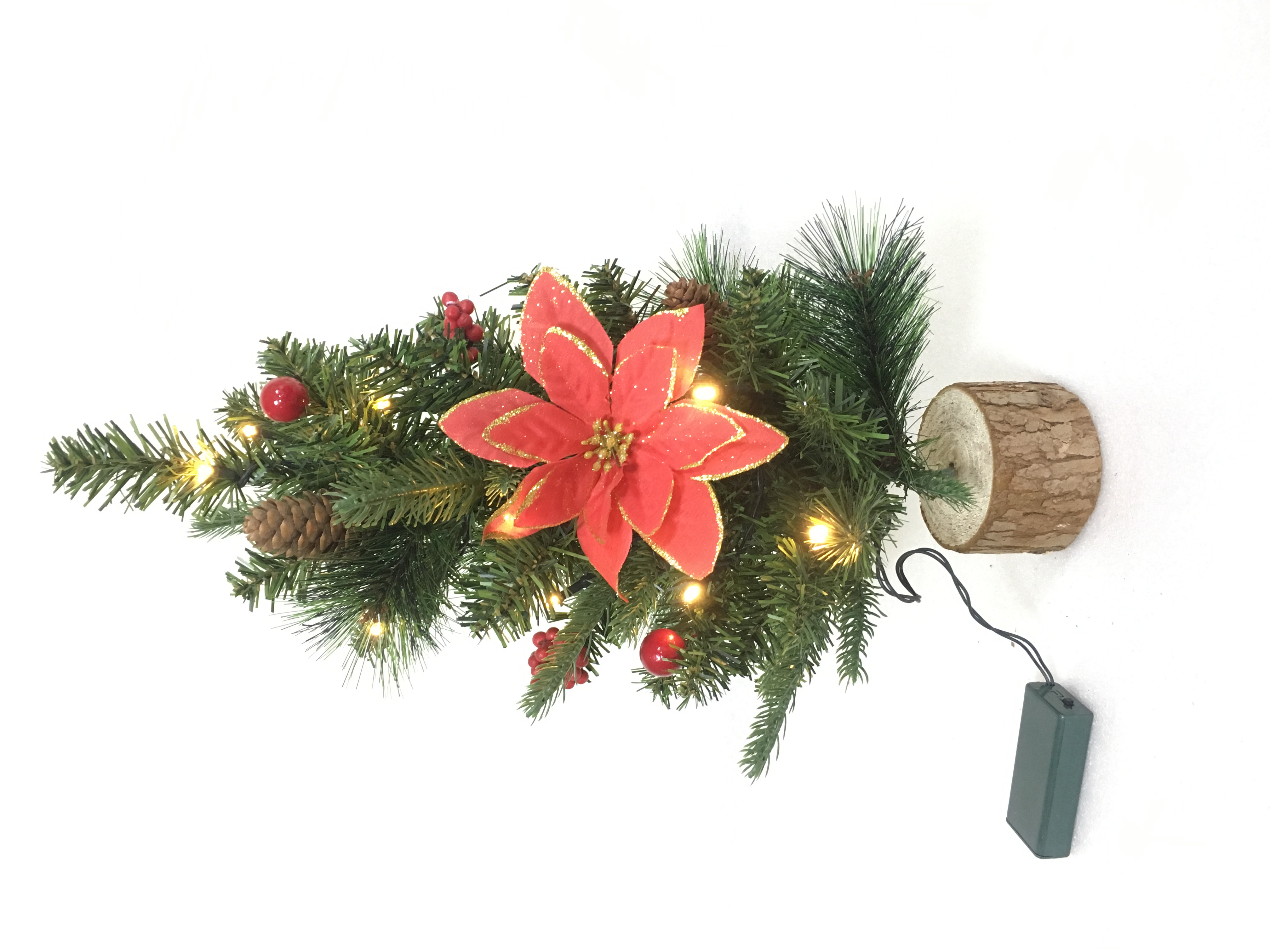 PVC PE পাইন নিডেল সিরিজ ক্রিসমাস ট্রি-40CM ছোট কাঠের মাথা এবং পা প্লাস সজ্জা
